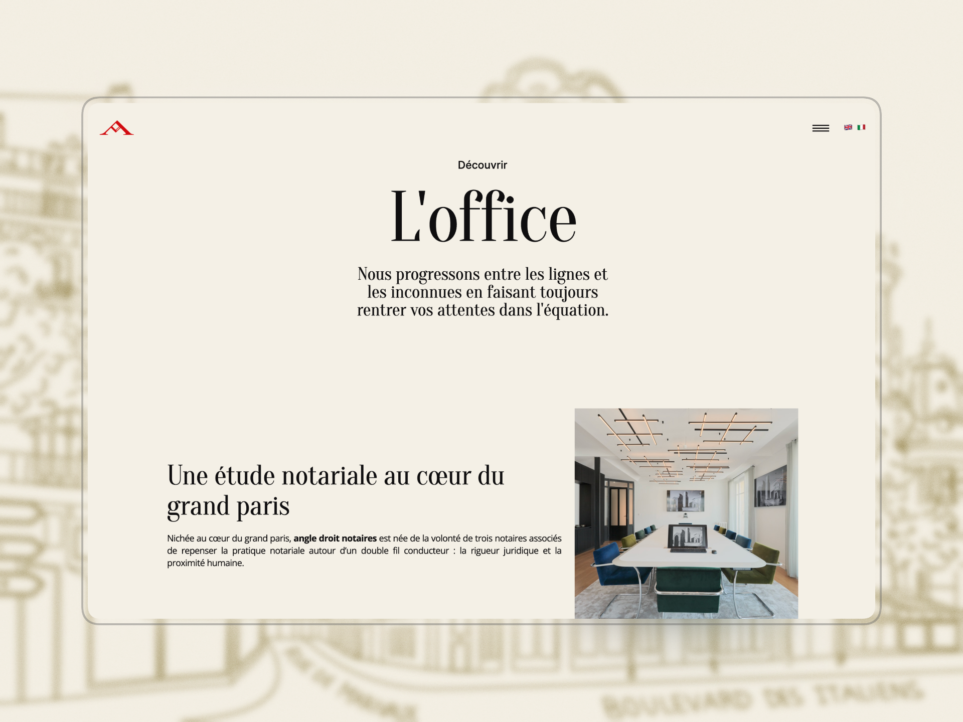 Nous avons accompagné Angle Droit Notaires dans une refonte complète du site, de A à Z, en travaillant à la fois le fond et la forme.