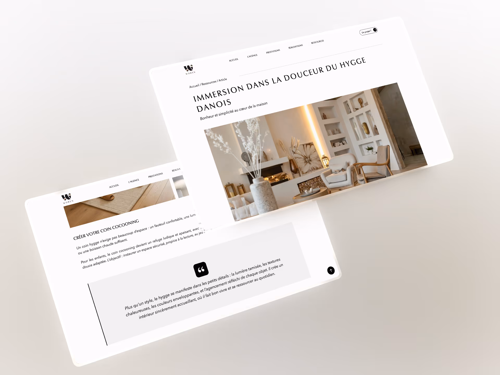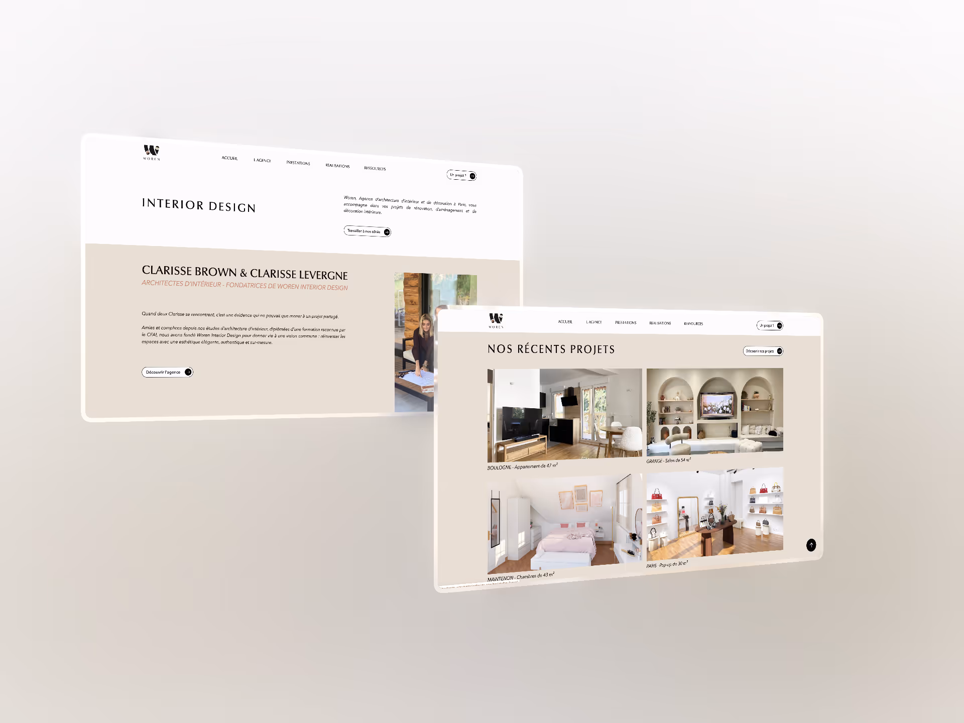 Pour WOREN Interior Design, le site a été pensé comme un prolongement naturel de leur travail, un espace digital à la hauteur de leur vision et de leurs projets.
