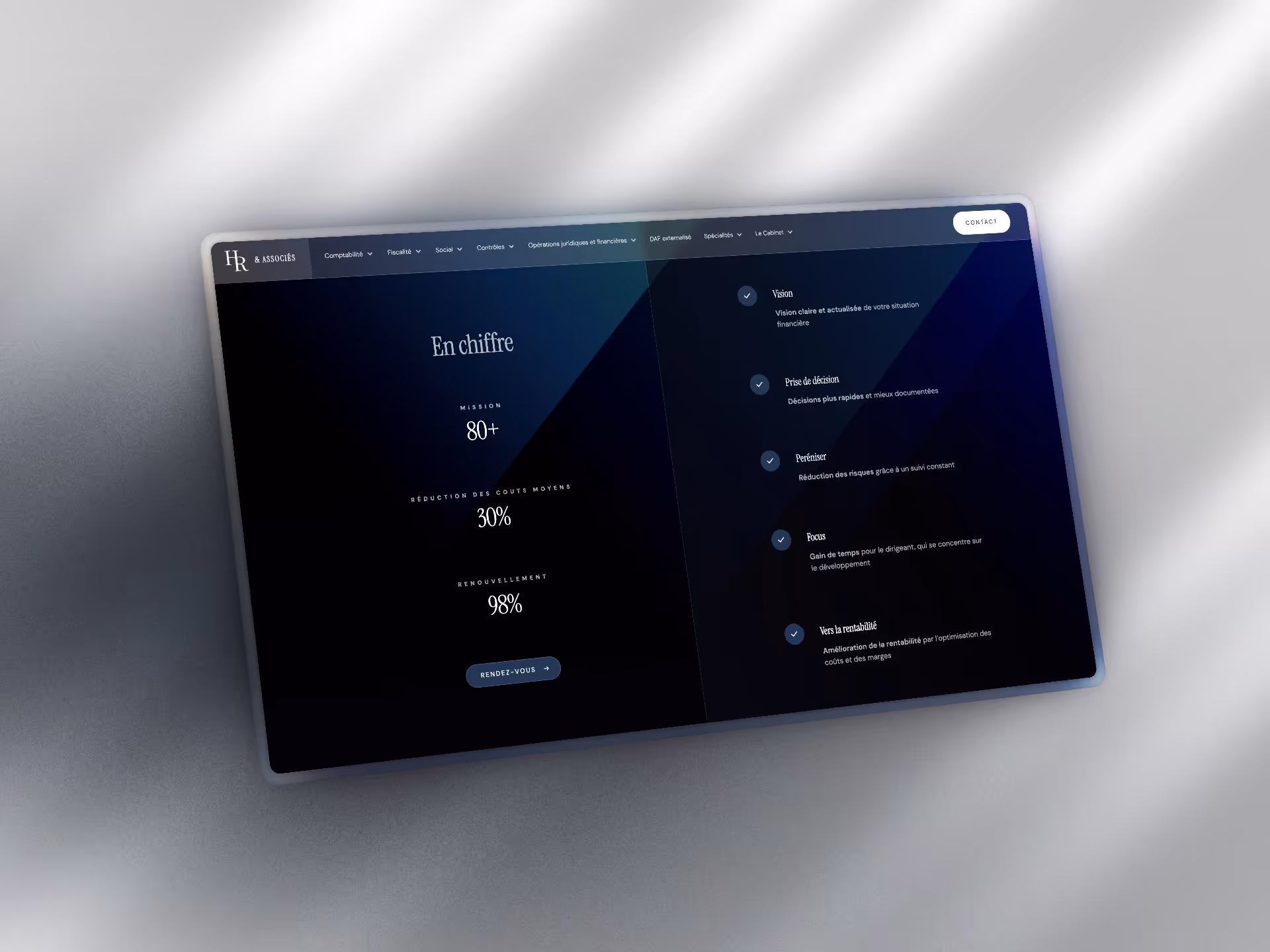 HR Associés est un cabinet d’expertise comptable qui accompagne les entrepreneurs et dirigeants d’entreprise avec une approche hautement personnalisée. Leur objectif était clair : disposer d’un site internet qui reflète leur niveau d’expertise et leur capacité à générer de la croissance pour leurs clients.