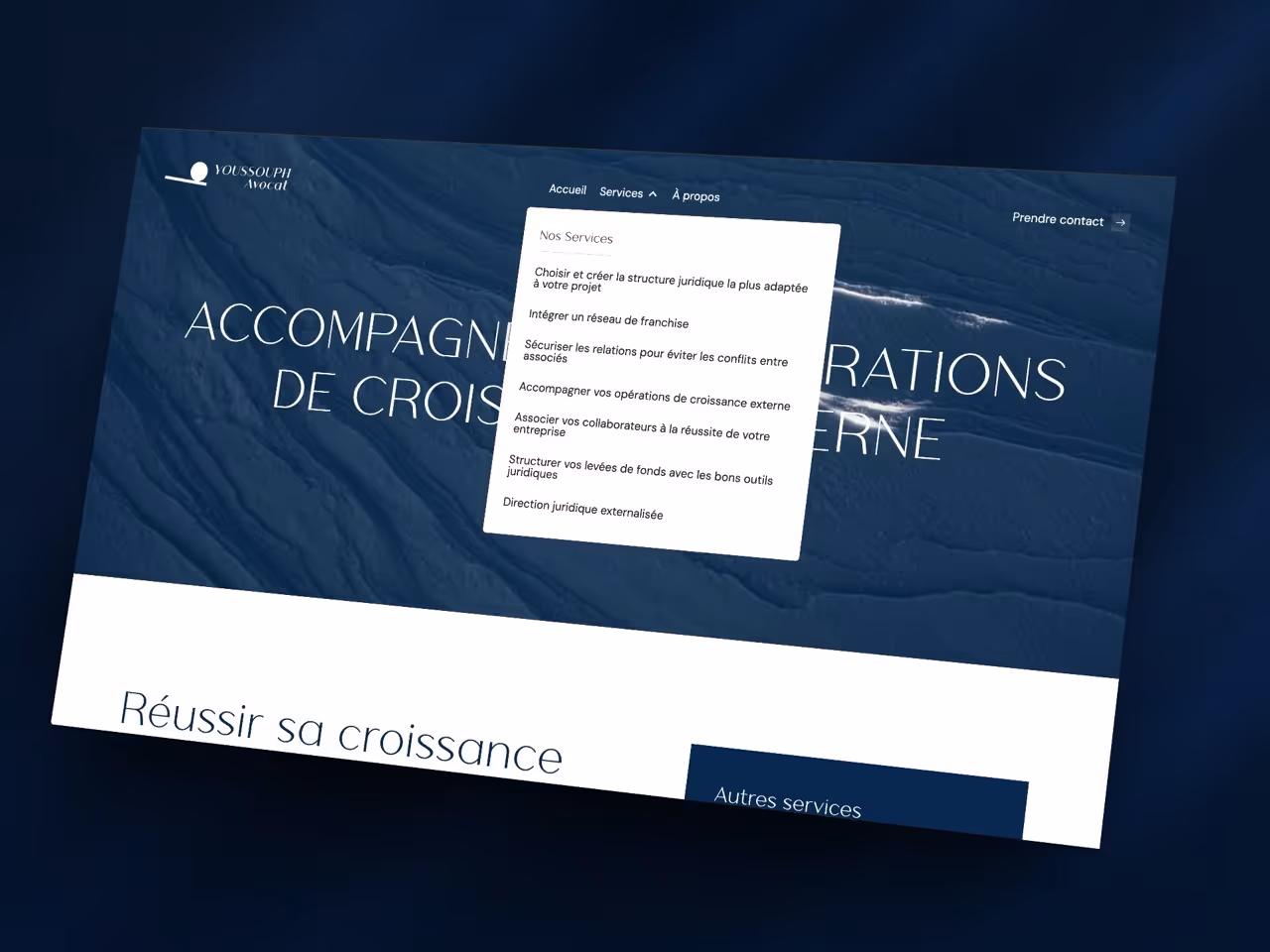 Maître Youssouph Malafoa accompagne les dirigeants et fondateurs d’entreprise dans toutes les étapes de leur développement : création, structuration, financement et opérations de croissance. Elle souhaitait un site à la fois professionnel, clair et orienté business, capable de traduire son approche pragmatique du droit des sociétés.